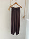 Pantalón bombacho azul marino haciéndole contraste rayas en marrón y beige
